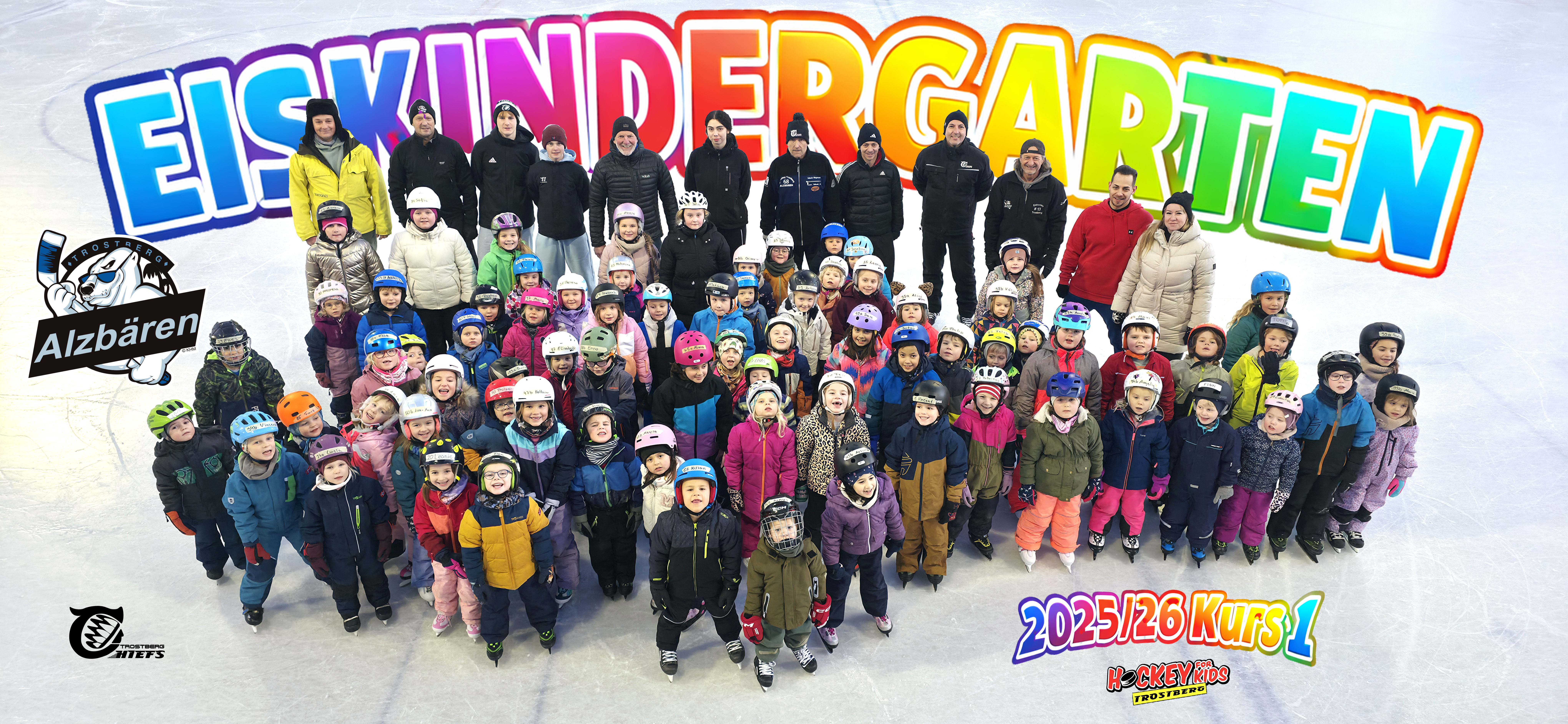 Den Grundstein für unseren Eiskindergarten legten vor vielen Jahren Hias Buchreiter, Herbert Wiendl, Günther Roßmanith und Ludwig Fürst mit Unterstützung durch einige Spieler wie Peter Strasser, Sepp Karmann,Tex Geissler, Rainer Roßmanith und einige mehr. 1995 hieß es Eislauf- und Eishockeyschule, die mit ca. 40 Kindern ein voller Erfolg war.